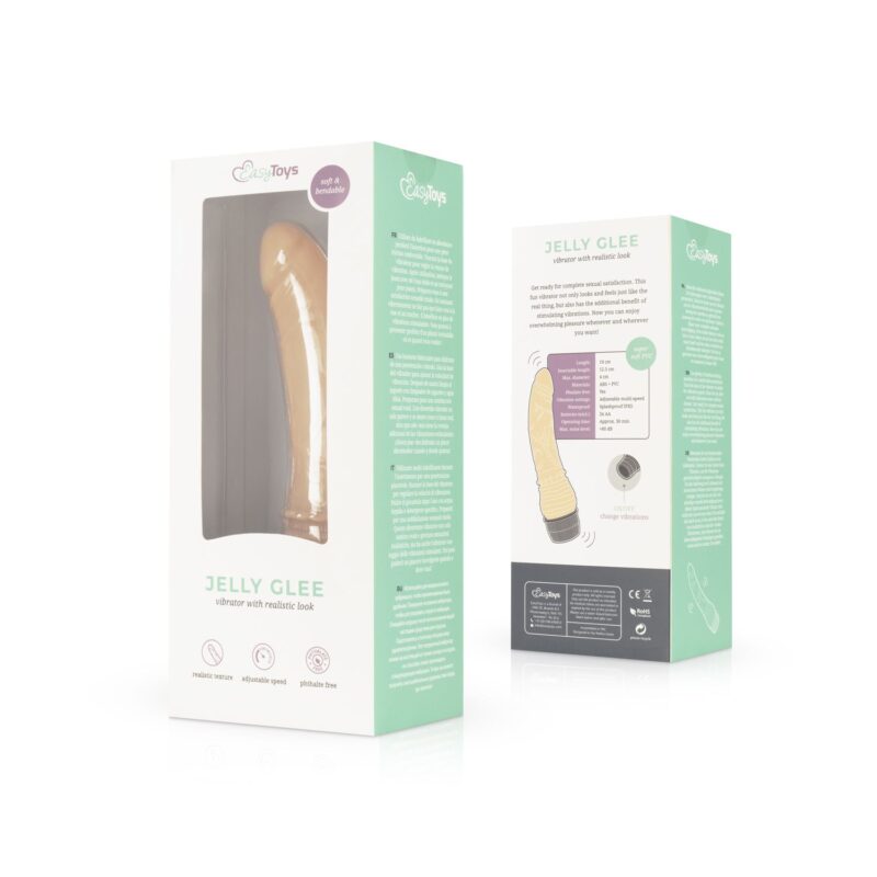 Met de realistische Jelly Glee vibrator geniet jij van een constante vibratie en heerlijk zacht en flexibel materiaal. De geaderde schacht en eikel zorgen voor een levensechte look en extra sensatie wanneer je de vibrator inbrengt. Gebruik hem met je favoriete glijmiddel en ga voor een fijn solo-avontuur of verwen je partner. De vibrator werkt op 2x AA batterijen die je kunt mee bestellen.