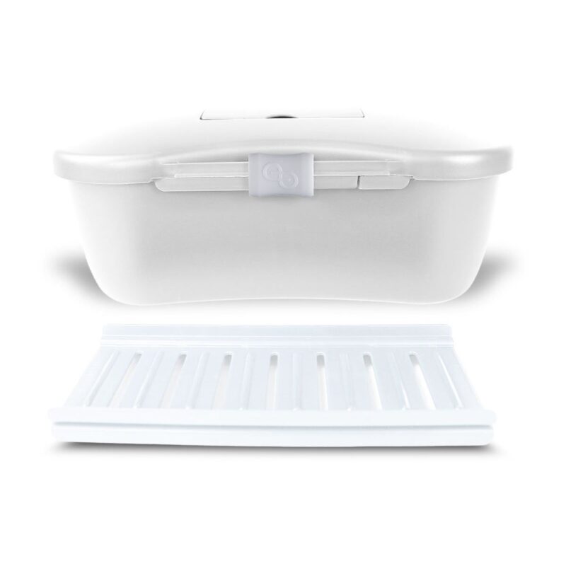 De draagbare PLAYTRAY is een alles-in-één seksspeeltjes onderzetter/was-/droogrek! Gebruik het als een interne JOYBOXX verdeler die stevig op de belangrijkste ‘vloeistof gemorste barrière afrastering’ van de doos zit voor de scheiding van speeltjes en het organiseren ervan.