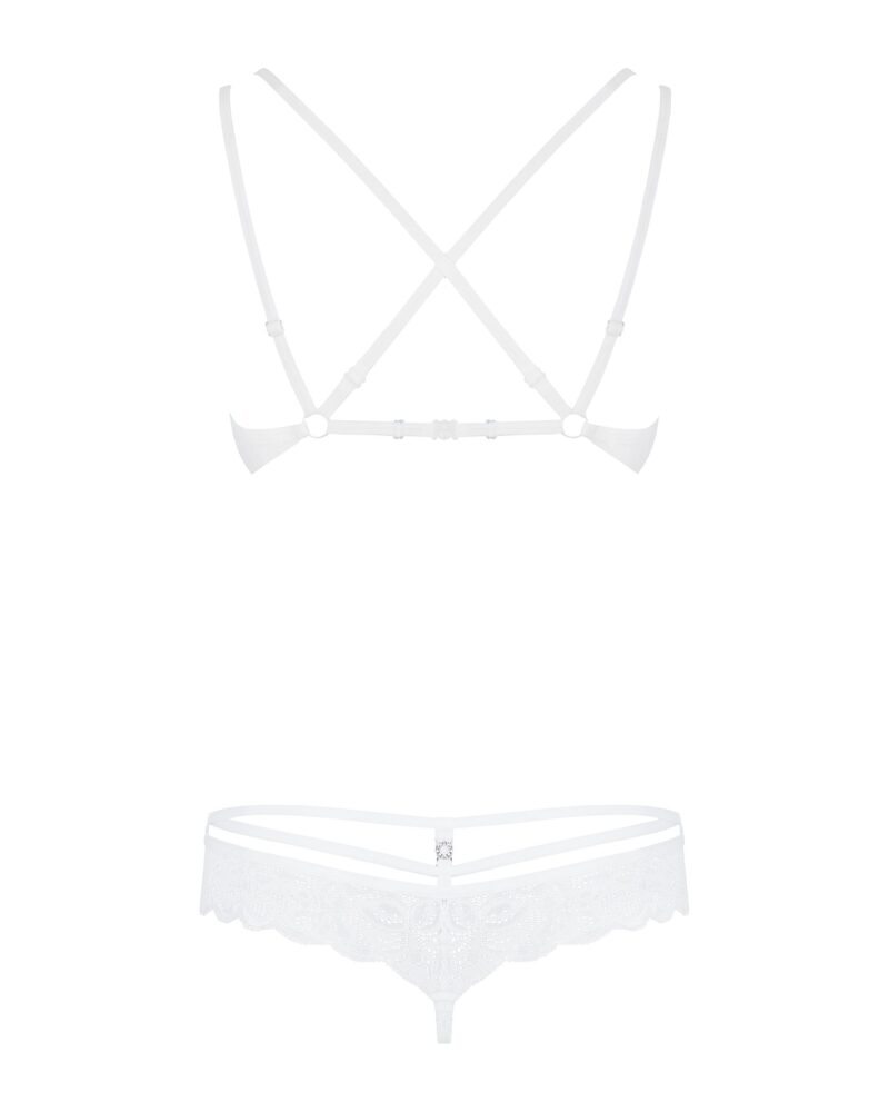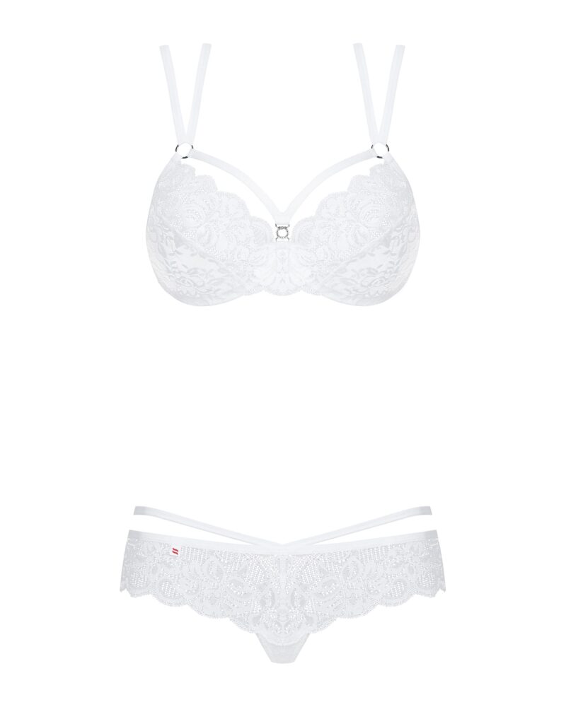 Deze BH-set heeft een mooie witte kleur met spannend bloemenmotief. Alle bandjes zijn te verstellen en het geheel is comfortabel te dragen.