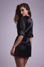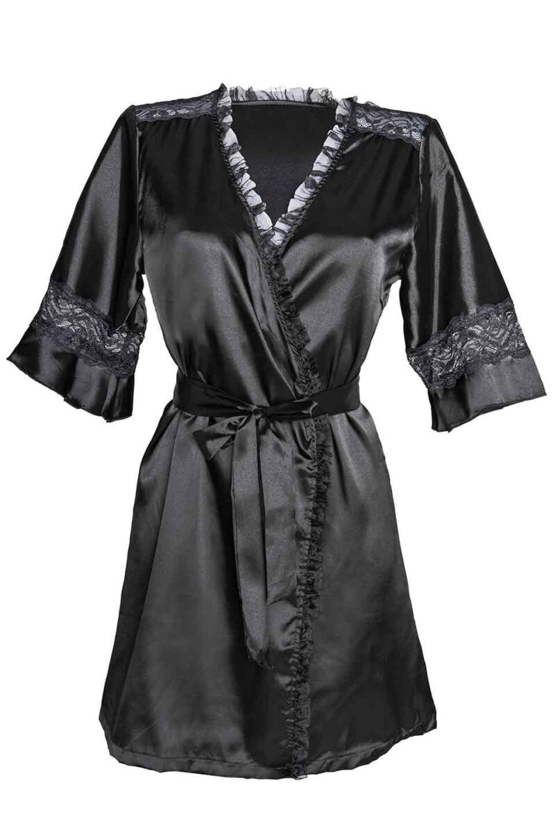 Voel je sexy in deze prachtige satijnen korte kimono! De kimono bevat kanten inzetten voor een extra verleidelijke look.