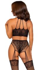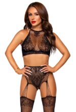 Breng je geliefde in een verleidelijke trance met dit sexy setje. Dit ondeugende lingeriesetje heeft een kanten crop topje met diepe V-hals met transparant design en een bijpassende hoge taille slip met netkousen. In dit setje zul je zeker complimenten krijgen!