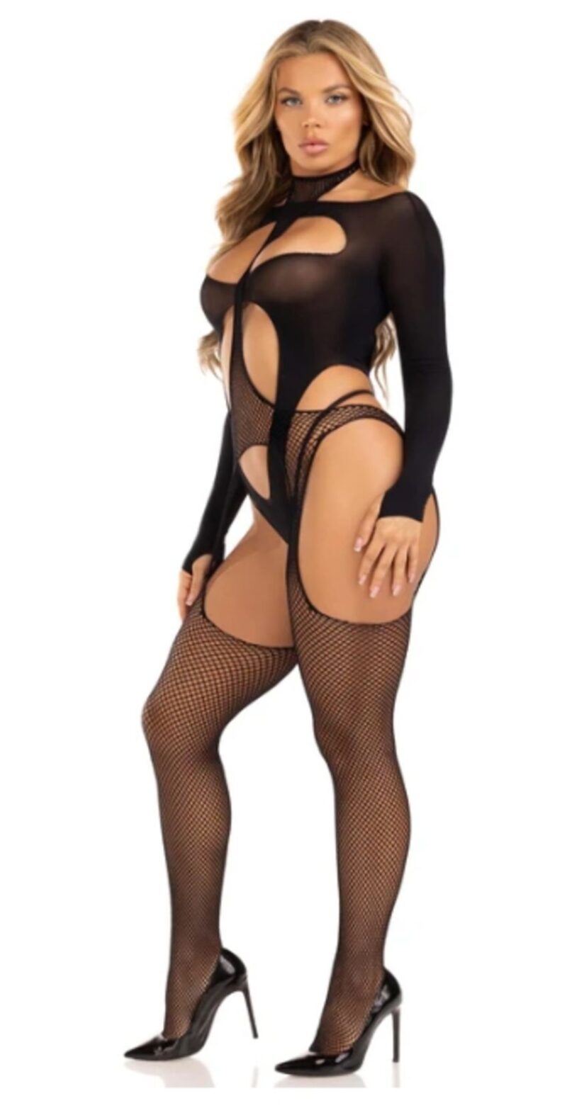 Trek de aandacht en wek opwinding op festivals of in de slaapkamer met deze verleidelijke twee-delige set bestaande uit een bodystocking en een bodysuit. Dit ensemble bestaat uit een halter suspender visnet bodystocking, gecombineerd met een gelaagde ondoorzichtige cut-out lingerie teddy, en biedt een veelzijdige en provocerende look die perfect is voor rave-evenementen, clubnachten of intieme momenten in de slaapkamer.