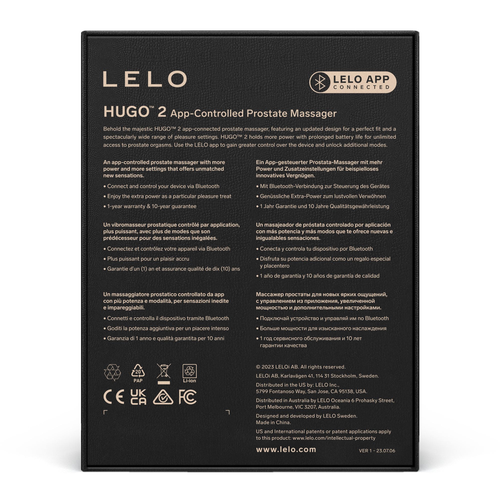 De LELO HUGO™ 2 is een geavanceerde app-gestuurde prostaat vibrator met een ergonomisch ontwerp voor optimale pasvorm en 16 krachtige stimulatie-instellingen. Het apparaat heeft een langere batterijduur voor langdurige prostaatplezier sessies en is compatibel met de LELO app voor extra functies en controle. Het hoogwaardige materiaal van lichaamsveilig silicone en ABS zorgt voor een zachte, gladde aanraking. Bedien eenvoudig handmatig of via de app en ontdek verschillende vibratiepatronen en intensiteiten voor gepersonaliseerd genot. De app biedt bovendien toegang tot tips, erotische literatuur en relatieadvies voor een complete wellness-ervaring.