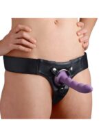 Leren strap-on harnas met verwisselbare ring. Leef je spannendste fantasieën uit met dit verstelbare zwarte strap-on harnas! Dankzij de vormgeving, die perfect aansluit bij je contouren, kun je gemakkelijk vrij bewegen. De O-ring biedt alle ruimte voor je favoriete dildo. De ring is gemakkelijk te verwisselen voor jouw favoriete cockring. Even vastklikken en je bent klaar om je partner indringend plezier te bezorgen!