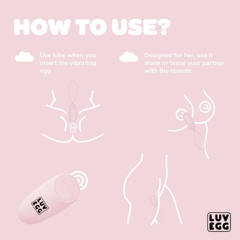 Daag jezelf en je partner uit met LUV EGG! Dit vibratie eitje met afstandsbediening is perfect voor partners die op zoek zijn een spannend speeltje. Het tril ei is omhuld met zacht siliconen. Dit materiaal is veilig voor het lichaam, voelt erg prettig aan en is grondig te reinigen. De afstandsbediening en het eitje zijn beide erg compact. Dit maakt het fijn om te dragen en geschikt voor iedereen. LUV EGG heeft een extra krachtige motor met 10 vibratiestanden. Het eitje is waterproof, oplaadbaar en kan gebruikt worden in combinatie met glijmiddel op waterbasis.