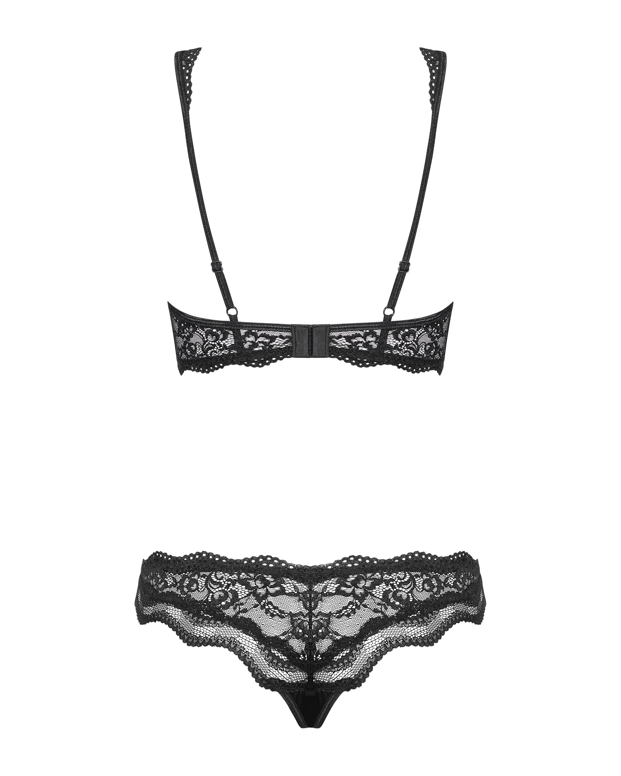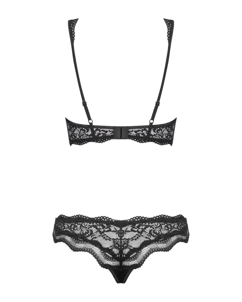 Deze Luvea set van Obsessive heeft een verleidelijke kanten bh met verstelbare bandjes en een haaksluiting. De bijpassende string heeft een mooie V-vorm en geeft jouw billen een sexy look. Deze set kun je ook prima onder je kleding dragen.