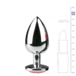 Kinky, zilverkleurige buttplug met roze steen van EasyToys Anal Collection, Breng de plug in en voel hoe hij je heerlijk vult. Door het grote formaat weet deze plug de gevorderden perfect te bevredigen. De zilverkleurige buttplug is van aluminium en heeft een glad, rond middenstuk. De plug heeft een puntige top waardoor ‘ie makkelijk naar binnen glijdt. Het roze diamantje maakt deze plug helemaal compleet. Perfect voor een intiem avondje met je geliefde.