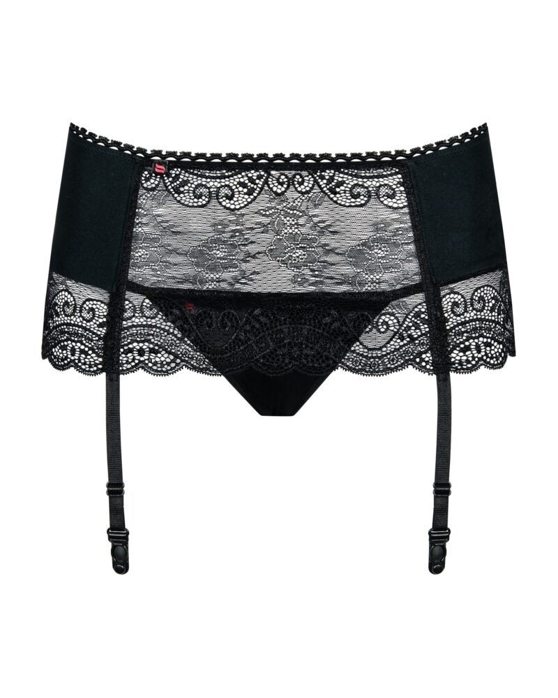 Deze jarretelgordel heeft prachtige kanten details en ruim verstelbare jarretel bandjes. Het materiaal is elastisch voor een perfecte pasvorm. De set wordt geleverd inclusief bijpassende string. Maak de look compleet met een paar sexy kousen!