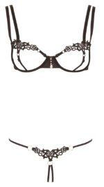 Zoek jij een spannend setje voor in de slaapkamer? Dan is dit lingeriesetje uit de Cottelli Collection echt iets voor jou. Dit minimalistische setje bestaat uit een BH met open cups en een string met open kruis. Beide zijn afgewerkt met kanten details voor een elegante look. De meeste bandjes zijn verstelbaar, zodat je verzekerd bent van een goede pasvorm.