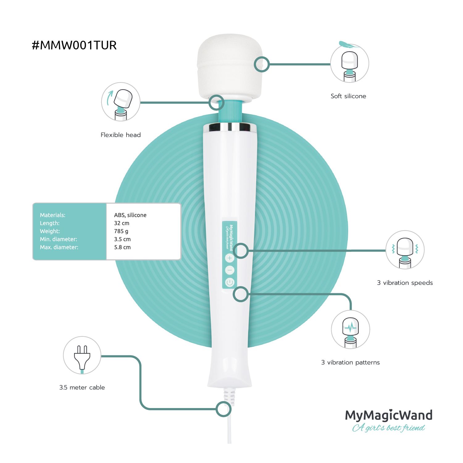 De MyMagicWand is voorzien van een extra lang snoer met een vaste stekker. Hierdoor levert de wand vibrator ongekend diepe vibraties. Daarnaast zijn er nooit problemen met een lege accu, lege batterijen of een afstandsbediening die niet optimaal werkt. Door simpelweg de stekker in het stopcontact te pluggen, is deze krachtige vibrator helemaal klaar voor actie. Tijd speelt hierbij geen rol. De MyMagicWand kan eindeloos doorgaan en hoeft niet te worden opgeladen.