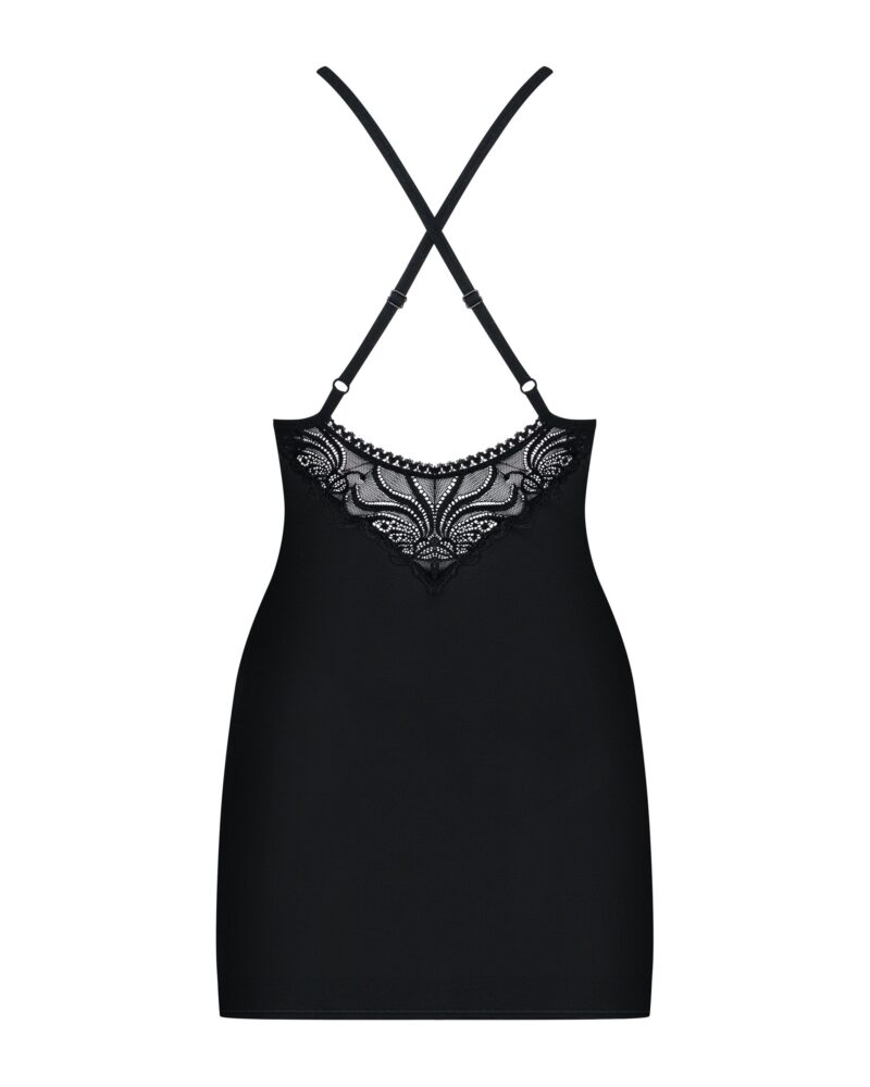 Deze negligé heeft een mooie decolleté gemaakt van kant. Dankzij de doorzichtige stof komen de borsten goed naar boven. De kleine diamantjes zijn het aanhechtingspunt en ze zorgen voor een luxe touch. Het spannende setje valt perfect over het lichaam heen en zorgt voor een sexy look. Zowel de string als de negligé is comfortabel te dragen.