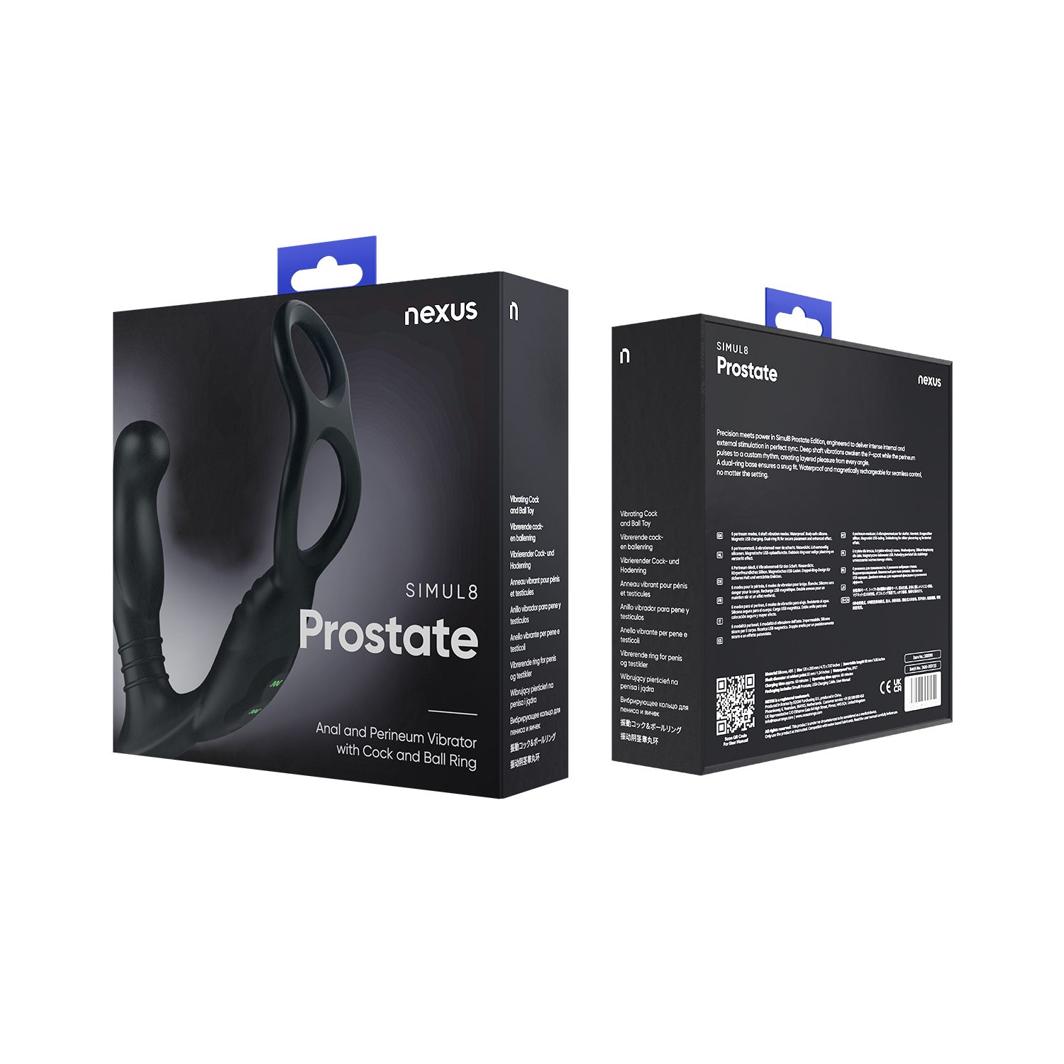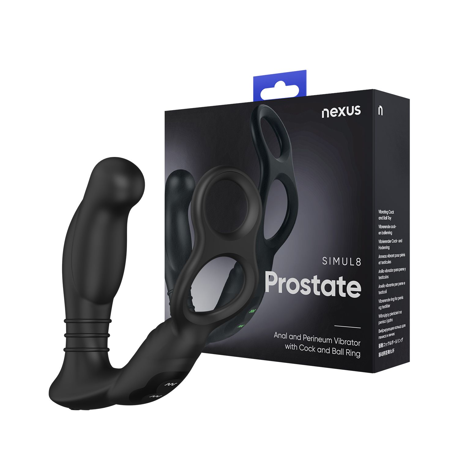 De Nexus Simul8 Prostaatvibrator is tegelijkertijd een asslock, want hij is voorzien van een cockring en een ballstretcher. Hij stimuleert zowel de prostaat als het perineum dankzij het speciale design. In totaal heeft de Simul8 vibrator 48 vibratieopties. Ook is hij waterproof en USB-oplaadbaar.