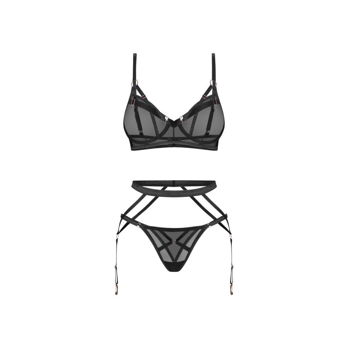 Laat je verleiden door een set die minimalisme moeiteloos combineert met een opvallend sensuele uitstraling. De Euridia-collectie speelt met strakke lijnen, transparante details en subtiele accenten die je natuurlijke silhouet prachtig benadrukken. De beugeltop biedt een verfijnde vormgeving en geeft een elegante contour, terwijl de verstelbare bandjes zorgen voor een persoonlijke, comfortabele pasvorm.