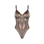 Met Soranna kies je voor een teddy die elegantie en verleiding moeiteloos combineert. Het nauwsluitende ontwerp volgt de natuurlijke lijnen van het lichaam en legt de nadruk op een vrouwelijk silhouet. De zachte, transparante mesh creëert een subtiel glinsterend effect dat het lichaam sierlijk omhult en een luxe uitstraling geeft.
