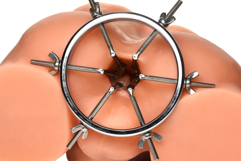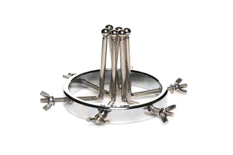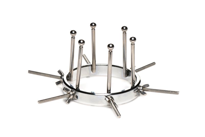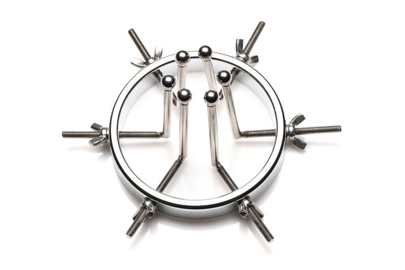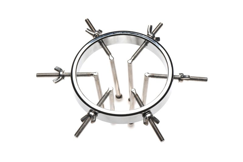 Gemaakt van sterk, duurzaam, nikkelvrij, en roestvrij staal is deze bijzondere anaal plug bruikbaar met alle soorten glijmiddelen. De plug bestaat uit één grote ring met een diameter die verstelbaar is van 2,5 tot maar liefst 10 centimeter. De 6 gladde staven hebben kleine ronde balletjes aan het uiteinde zodat hij comfortabel aanvoelt tijdens het gebruik. Als hij volledig is uitgerekt is hij zelfs groot genoeg om je vuist er door te steken. Elke dilator kan individueel vaster gedraaid worden of losser gemaakt door gebruik te maken van de vleugelmoeren. Reinig na gebruik met lauwwarm water en een toycleaner.