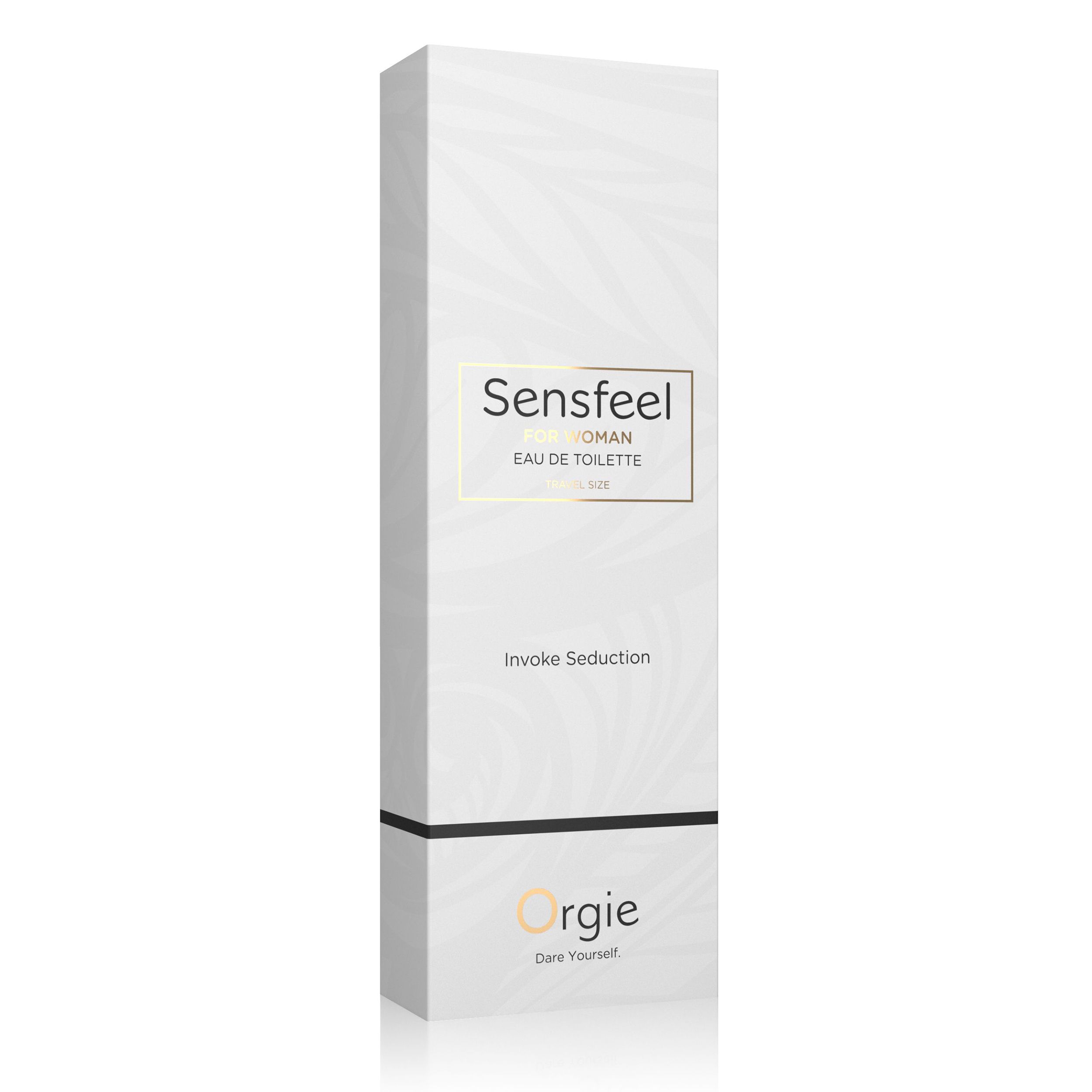 Orgie Sensfeel Woman eau de toilette, is geformuleerd met Sensfeel? for Her, een natuurlijk actief ingrediënt dat de fysieke aantrekkelijkheid van vrouwen verhoogt door de interactie van twee componenten witte jasmijn (Jasminus officinalle) en johannesbroodboon (Ceratonia siliqua) die de copuline nabootsen, verhoging van de synthese van het mannelijke geslachtshormoon – testosteron. Met zijn extaseerende afrodisiacum, fruitige en bloemige geur, nodigt dit parfum uit tot avontuur vol passie.