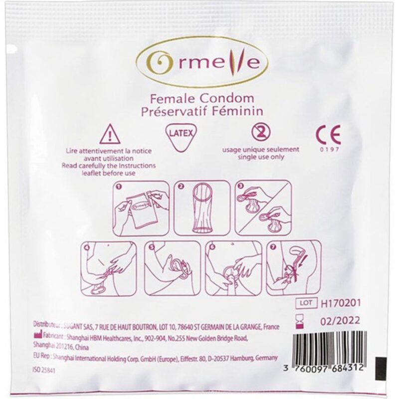 Ormelle vrouwencondooms zijn gemaakt van transparant latex. Omdat dit condoom gemaakt is van latex maakt het minder geluid dan de ander vrouwencondooms. Hiermee dus niet geschikt voor vrouwen of mannen met een latex allergie. Ormelle heeft een zachte ring aan de buitenkant van het condoom en een kleinere ring aan de binnenkant. Door deze ringen kan het condoom in de vagina ingebracht worden en blijft het tijdens het vrijen op zijn plaats zitten. Hierdoor beschermt het condoom bij juist gebruik goed tegen SOA en zwangerschap. Ormelle vrouwencondooms voldoen aan de Europese normen en zijn ISO gecertificeerd. Extra voordelen van Ormelle zijn het zachte materiaal en de zachte flexibele buitenring. En uiteraard het natuurlijke gevoel dat dit ruime condoom biedt. Gebruik het condoom met of zonder glijmiddel.