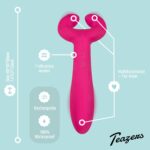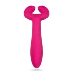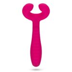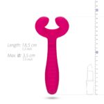 Met deze unieke vibrator voor koppels kunnen jullie beiden genieten van een spannend speeltje. Dit multifunctionele seksspeeltje kan aan beide uiteinden worden gebruikt. De ronde kant kan worden gebruikt als masturbator door de ring om de penis te schuiven en langzaam op en neer te bewegen. De binnenkant van de ring is genopt voor extra stimulatie. Ook kunnen de twee puntjes van de ring worden gebruikt voor een gerichte stimulatie van bijvoorbeeld de clitoris. De andere kant van de toy is vooral geschikt voor penetratie, zowel anaal als vaginaal. De schacht is voorzien van ribbels en hij heeft een gebogen design, waardoor hij ook de G-spot of prostaat goed kan verwennen. Beide uiteinden hebben een aparte motor die apart van elkaar te bedienen zijn. Zo kan de vibrator precies instellen zoals je zelf wil. Beide motoren hebben 7 verschillende standen, waarvan 3 snelheden en 4 patronen. Hou het powerknopje een paar seconden ingedrukt totdat de knopjes oplichten. Druk kort op de + knop om de vibraties in de stimulator aan te zetten en naar de volgende stand te gaan. Druk kort op de powerknop om de vibraties in de vibrator aan te zetten en naar de volgende stand te gaan. De toy is volledig waterproof en kan worden opgeladen met de bijgeleverde USB-kabel.