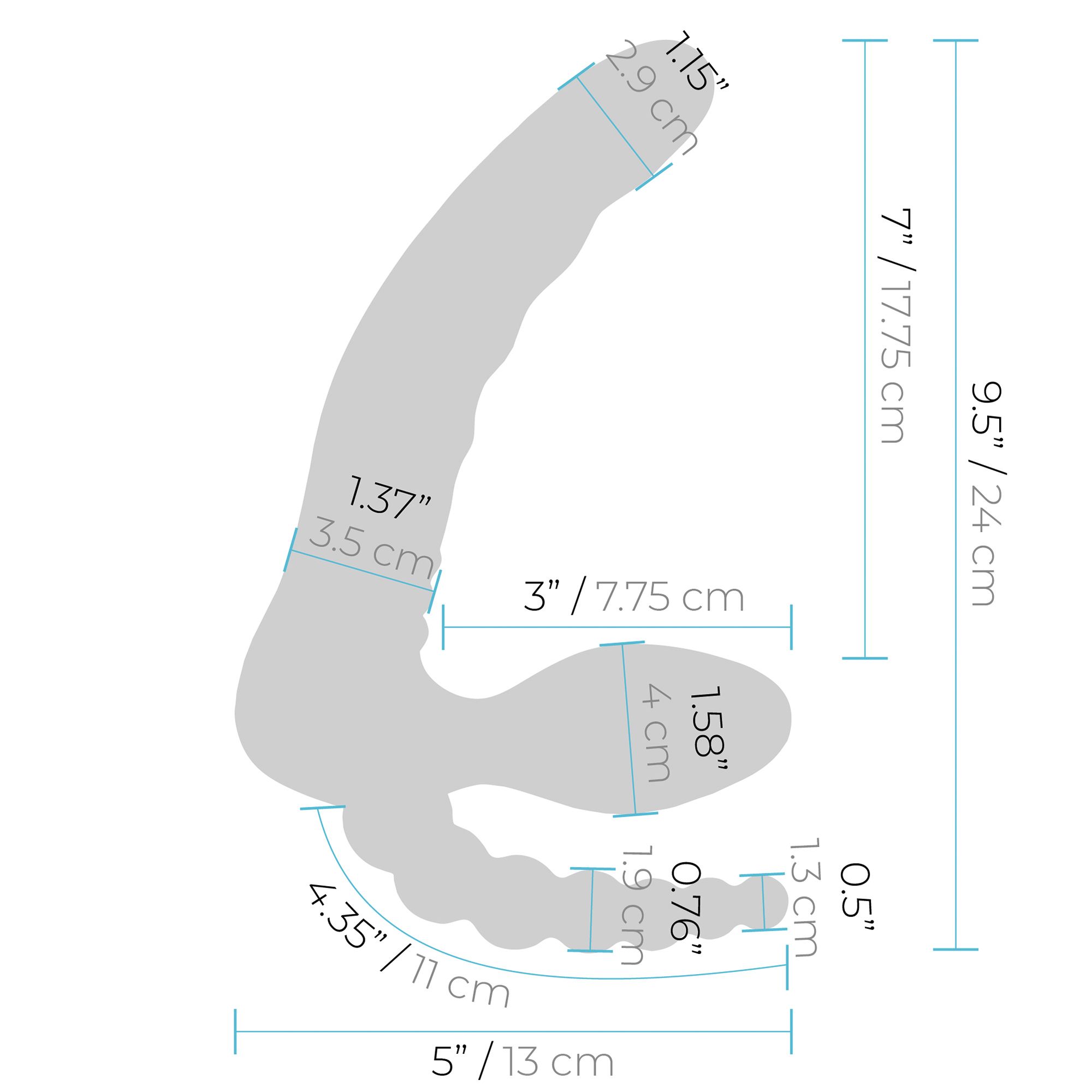 Voer je penetratiespel op naar een intens nieuw niveau met de 7″ Remote Control Strapless D.P. Silicone Strap On, die twee uiteinden heeft om stimulatie te bieden aan zowel de drager als de gebruiker aan de ontvangende kant. Dit unieke genotsapparaat biedt dubbele stimulatie aan de drager met vaginale en anale penetratie van een inbrengbare schacht die kan worden gebruikt voor G-Spot stimulatie en een streng kralen voor de achterdeur. Bedien de krachtige vibraties op afstand met de bijgeleverde draadloze bediening. De dildo is gemaakt van zijdezacht siliconen en de royale lengte van 7 inch is perfect voor partnergamen. Geniet van deze krachtige vibrerende dildo onder de douche of in bad dankzij de volledig waterdichte constructie.