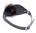 Op zoek naar een echt bijzondere ballgag? Dan is de Pussy Face Vagina Gag perfect voor jou! De kunstleren gag is voorzien van een realistische masturbator. Want waarom zal je kiezen als je je favoriete openingen tegelijkertijd kunt penetreren? Het is onmogelijk voor de sub om zijn/haar mond dicht te doen door de ronde koker. De masturbator is gemaakt heerlijk zacht materiaal dat levensecht aanvoelt. De rest is gemaakt van glad kunstleer. De band die achter het hoofd langs loopt is verstelbaar waardoor de gag altijd goed zal passen. De hoofdband heeft een omtrek van max. 67 cm.