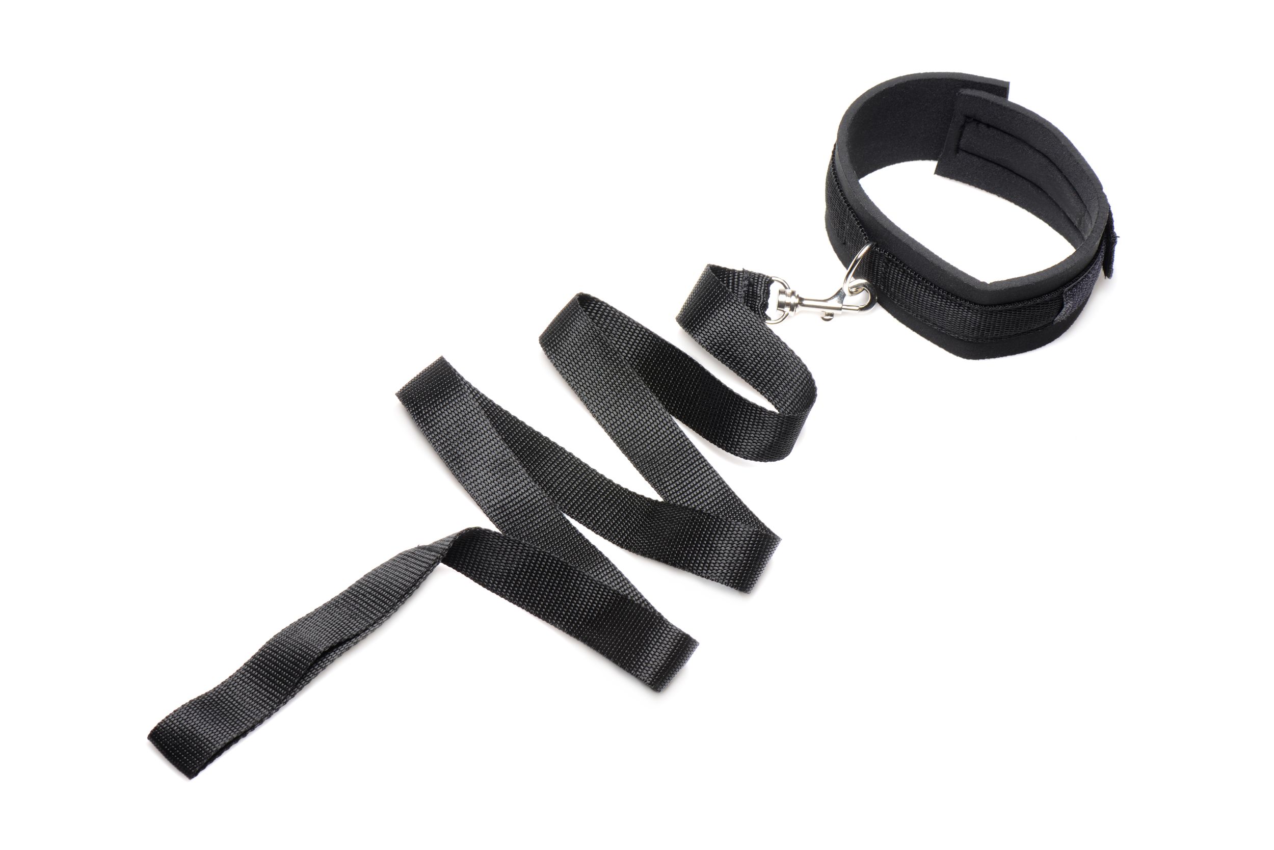 Speel eens een tijdje lekker de baas met deze halsband met riem van Frisky. De SM-set is zeer geschikt voor beginners. De halsband is gemaakt van zacht materiaal en past vrijwel iedereen. De halsband heeft een ring, waar de riem aan vastgemaakt kan worden met de aangesloten karabijnhaak. De riem heeft een lengte van 116 centimeter en is dus voldoende om je partner goed mee onder controle te houden. Een geschikt speeltje voor puppy play, maar ook tijdens het sexen.