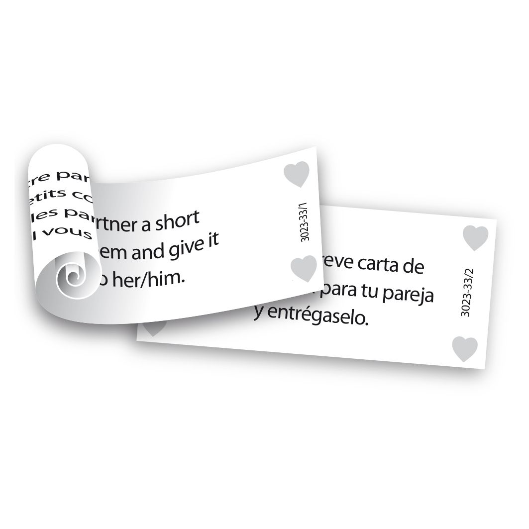 Romantic Heart is een uniek en speels geschenk boordevol romantiek. In dit hartvormige doosje vind je meer dan 100 romantische uitdagingen in zowel het Engels als Spaans. Gebruik de bijgeleverde pincet om een rolletje te trekken en ontdek of het moment vraagt om een liefdevol gebaar, een intieme avond of een verrassende date. Vraag je partner om jullie favoriete romantische liedje te draaien, leg een spoor van rozenblaadjes naar een speciale plek of schrijf een gedicht voor elkaar. Sommige opdrachten zijn direct uitvoerbaar, andere vragen wat voorbereiding – maar allemaal zorgen ze voor warme, dierbare momenten samen. Tijdslimieten zijn er niet: jullie bepalen het tempo, en er zijn alleen maar winnaars. Perfect voor koppels die hun liefde willen vieren en verdiepen.