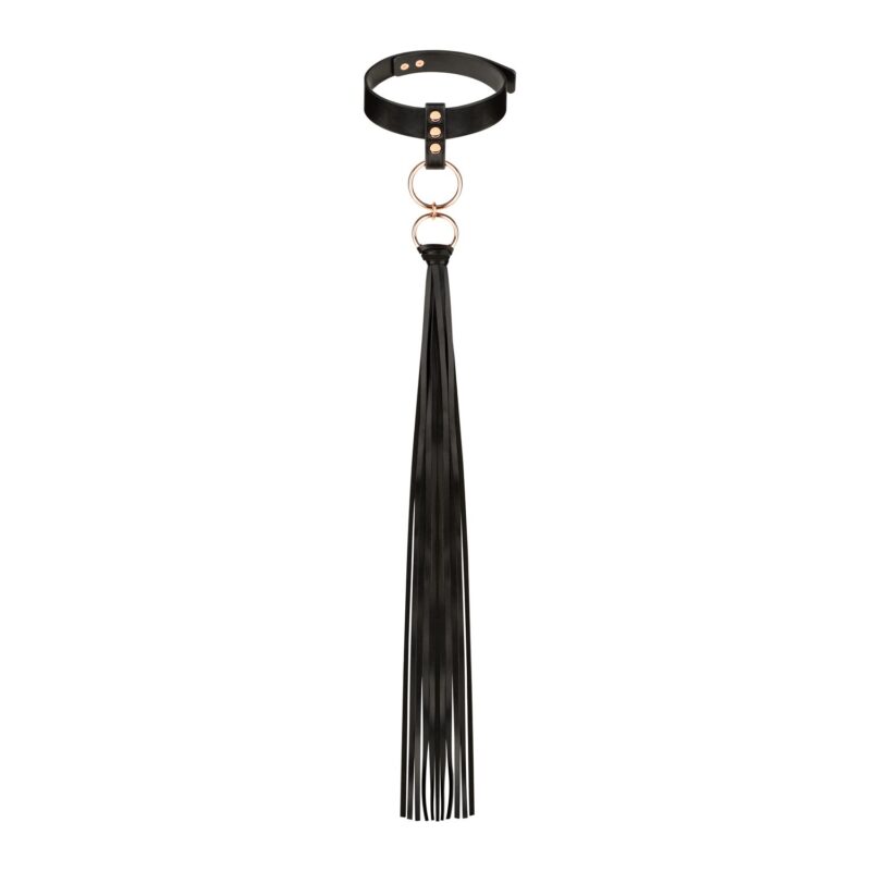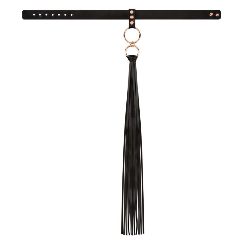 Deze chique halsband met flogger combineert elegantie en speelse verleiding in één accessoire. Naast het toevoegen van een vleugje flair aan elke nachtelijke outfit of verleidelijke look, is de flogger niet alleen voor de show—het is een functioneel item, perfect voor strelingen of speelse tikjes op de huid van je partner. Maak een gedurfde statement met dit stijlvolle en veelzijdige item. Hoe je het gebruikt, is helemaal aan jou…