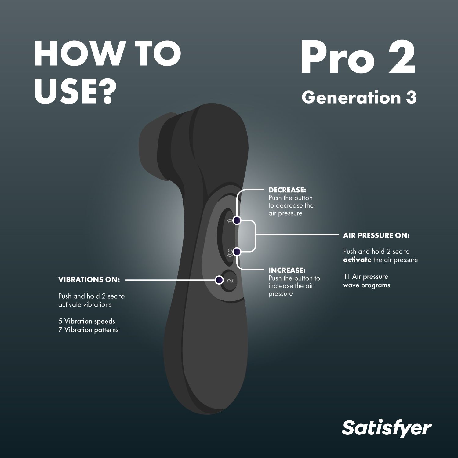Maak kennis met de nieuwste generatie Satisfyer! De Pro 2 Generation 3 zorgt voor een geheel nieuwe dimensie van genot. Deze klassieke Satisfyer is uitgerust met de innovatieve Liquid Air Technology, waarmee de sensuele golf van pulserend water wordt nagebootst zonder dat er direct contact nodig is met de huid.