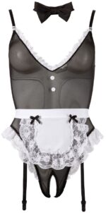 Ervaar het perfecte rollenspel met deze serveerster outfit! De body is gemaakt van netstof en heeft kanten details en een open kruis. Met verstelbare bandjes. Ook de jarretels zijn verstelbaar en verwijderbaar. Inclusief schortje en halsband met strikje en klittenband.