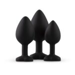 Deze 3-delige buttplug set is perfect voor iedereen die anale stimulatie wil ontdekken. De buttplugs hebben verschillende afmetingen, zodat je klein kan beginnen en in je eigen tempo steeds een stapje verder kunt gaan. De plugs zijn gemaakt van heerlijk zacht, lichaamsveilig siliconen voor een comfortabel gebruik. De platte onderkant van de plugs zorgt voor een veilig gebruik. Ook is de onderkant voorzien van een schitterende steen, wat de plugs een luxe uitstraling geeft.