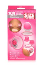 Laat je tepels genieten van intensieve, handsfree stimulatie met de SIZE MATTERS – 10X Roterende Tepelzuigers. Deze zuignappen blijven stevig op hun plaats dankzij vacuümkracht, zodat je je handen vrijhoudt voor andere verleidelijke zones. Gemaakt van zijdezacht, ftalaatvrij siliconen, bieden ze ultiem comfort en genot.