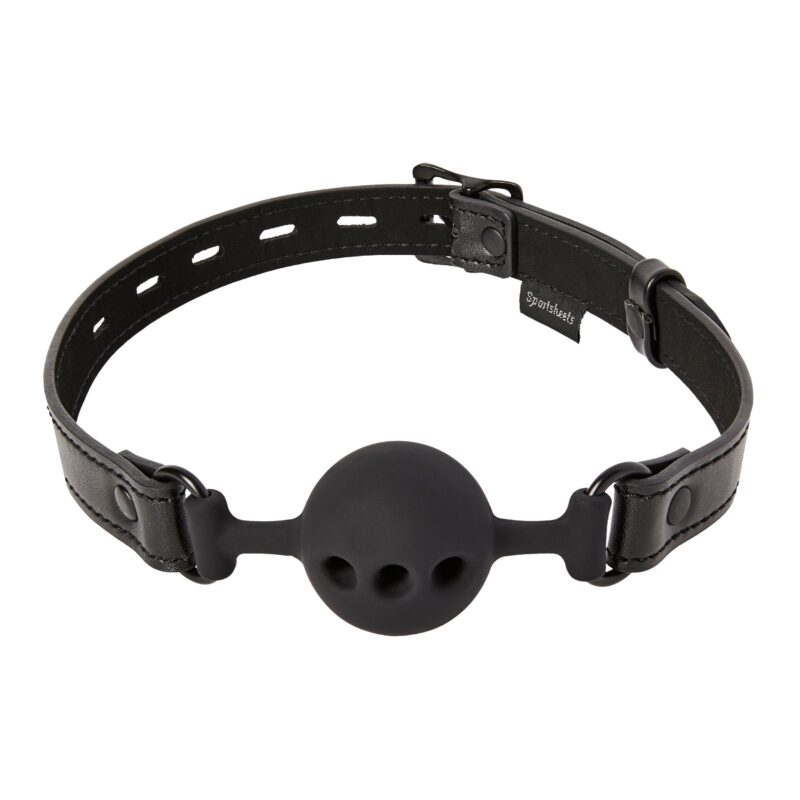 Doordat de bal doorboord is, geeft deze ademende prop sensaties van hulpeloosheid, zonder te overweldigen. Geweldig voor mensen die op zoek zijn naar spannende manieren om restrictie te ervaren. De ademhalingsgaten maken het comfortabel voor langere sessies van verleidelijke pijniging.
