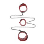 Maak ze vast, het gaat er heet aan toe. Verbeter je volgende scène met de Saffron Chained & Tamed, deskundig ontworpen om je partner aan je overgeleverd te houden. Gebruik alle stukken samen of door elkaar voor een optimale positionering. Begin je volgende sessie met de houdingskraag voor extra controle. Voeg dan de dubbele polsboeien toe om hun handen samen te houden en de dubbele enkelboeien om ze op hun plaats te houden. Verbind vervolgens de manchetten en kragen zoals u dat wilt en straal uw macht over hen uit.