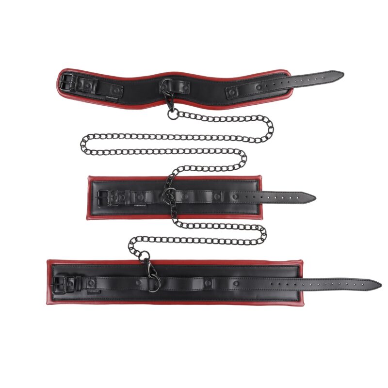 Bevat een nekkraag, polsboeien en enkelboeien.