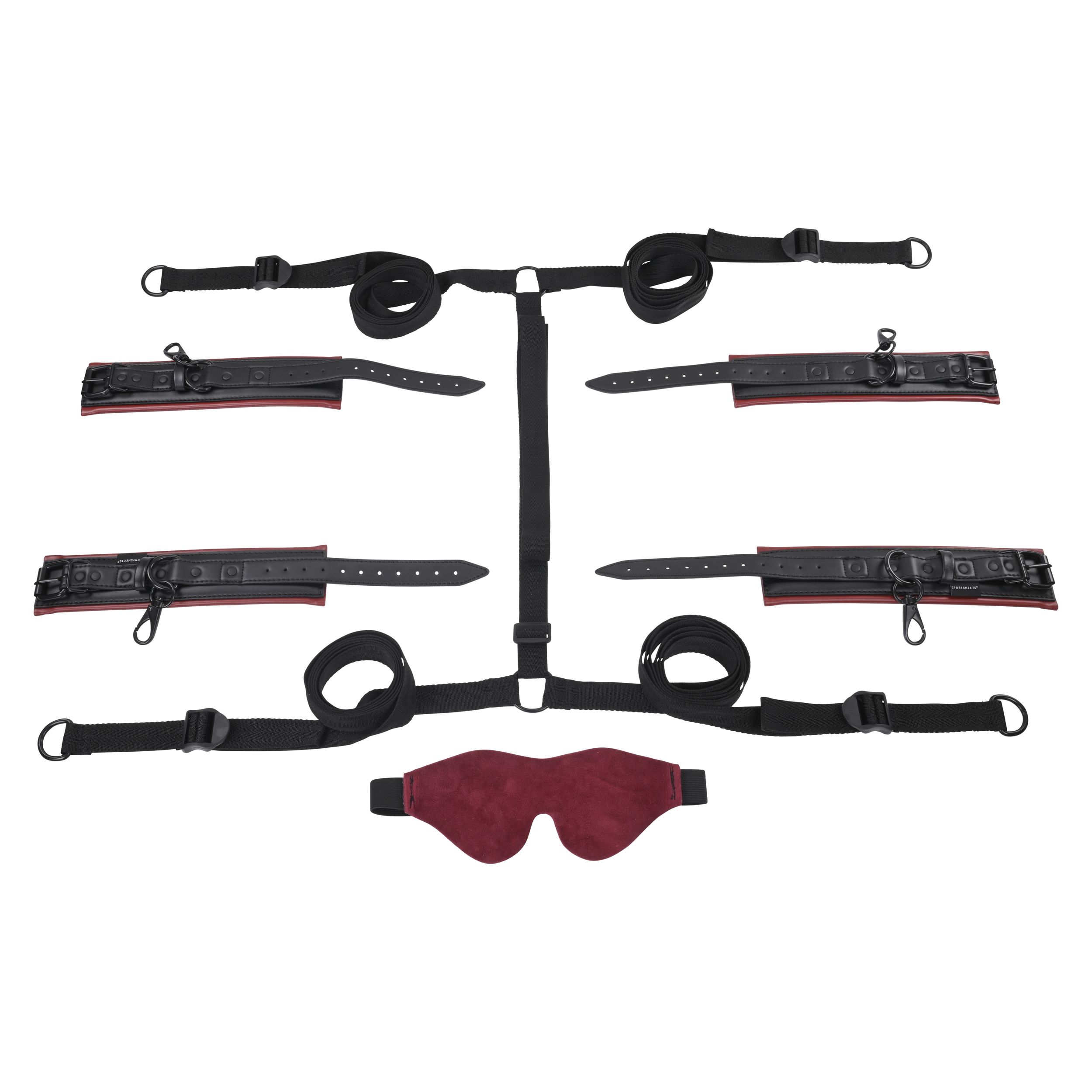Het originele (ja, wij hebben het uitgevonden) Under the Bed Restraint System heeft zojuist een sensuele en verleidelijke nieuwe uitstraling gekregen! In enkele minuten opgezet, creëren de aantrekkelijke dieprode tinten een lust gevulde setting die perfect is voor het stoutste spel. Vier luxueuze verstelbare boeien van zacht en soepel namaakleer met bevestigingsbanden worden vastgemaakt aan één centrale verbindingsriem die veilig onder je matras past.