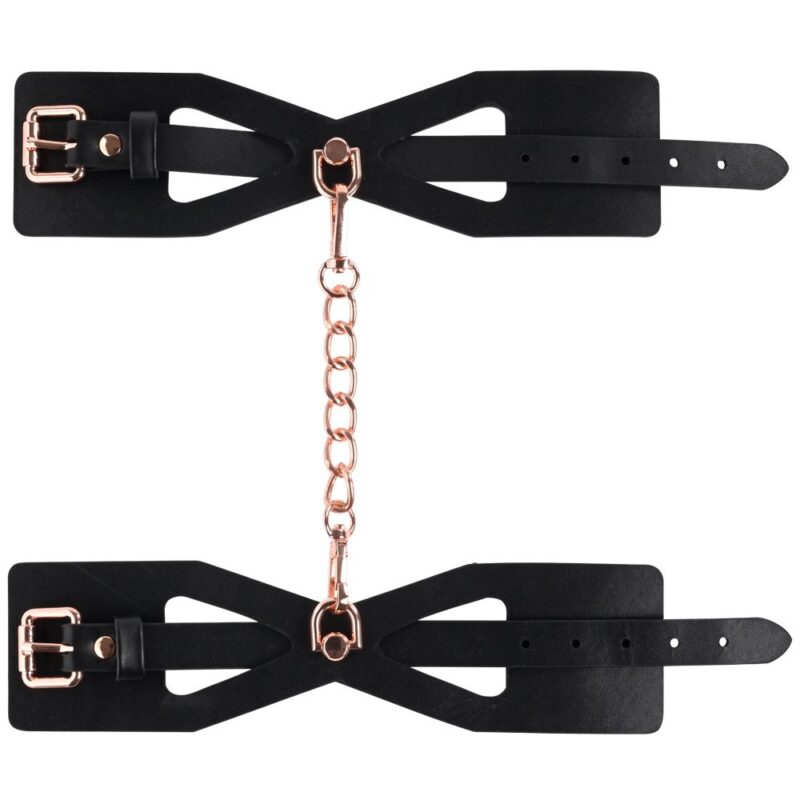 Laat ze zien dat je altijd krijgt wat je wilt met boeien die je zullen laten smeken om meer. De Brat Handcuffs hebben korsetachtige uitsparingen en een korte roségouden ketting voor een brutale look. Wie weet zeggen deze handboeien gewoon “alsjeblieft”.