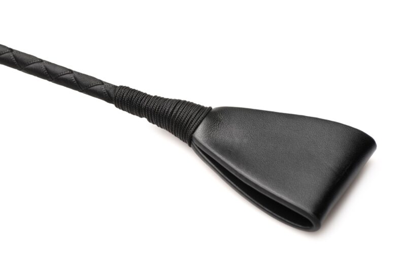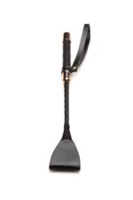 Deze zweep is een opvallend accessoire, met een totale lengte van 30,5 centimeter. Zijn kop meet 5,7 centimeter in lengte en 3,8 centimeter in breedte, wat zorgt voor een effectieve impact. Het handvat is voorzien van een handige lus, die niet alleen zorgt voor een betere grip maar ook als mogelijkheid dient om hem gemakkelijk op te bergen na gebruik. De zweep is gemaakt van van nepleer en is daarmee vegan-friendly.