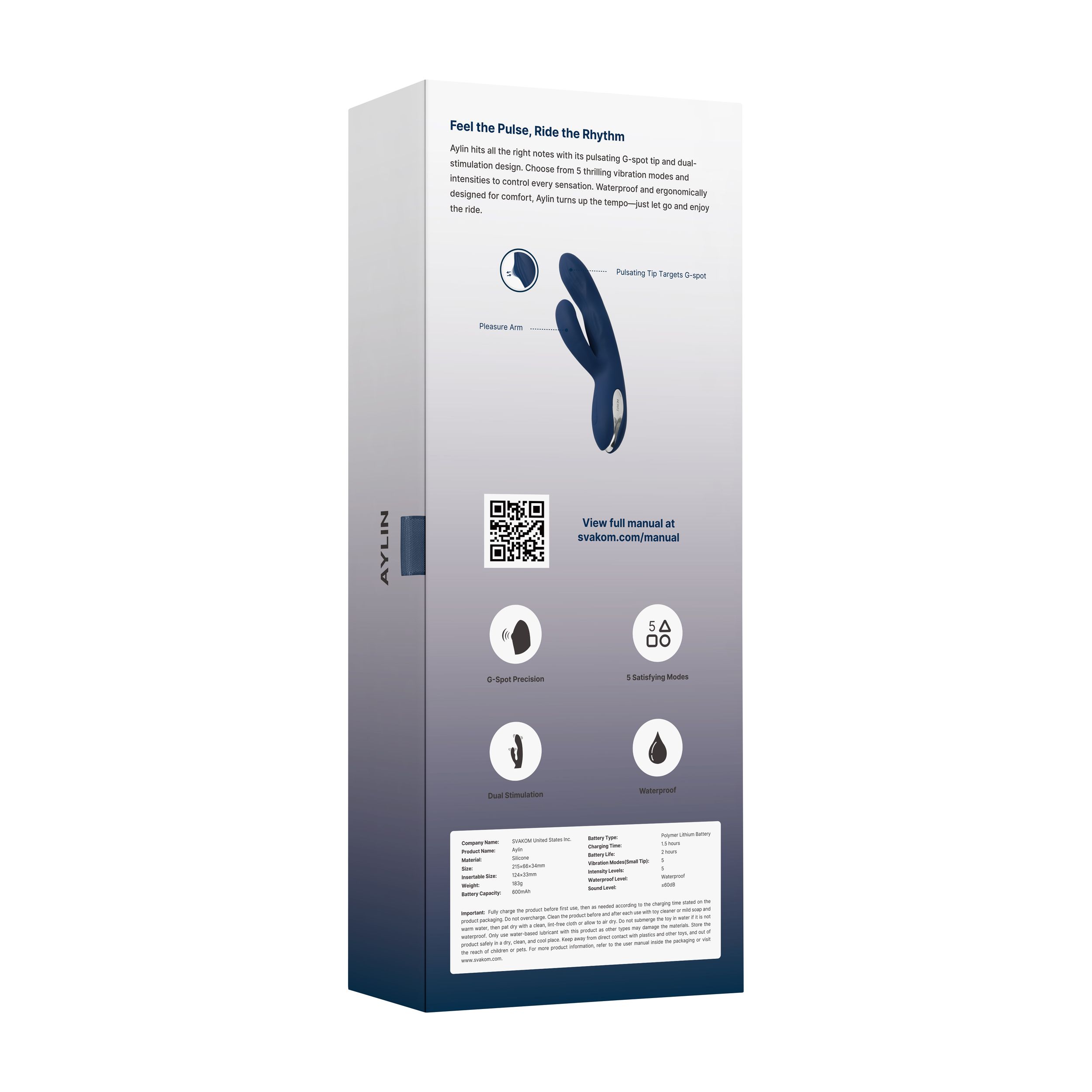 Geniet van dubbel plezier met Aylin, het seksspeeltje met dubbele stimulatie dat vibrerende koppen heeft voor de G-spot en de clitoris. Met vijf vibratiemodi en vijf intensiteitsniveaus kunt je jouw plezierervaring aanpassen om adembenemende orgasmes te bereiken. Aylin is ook waterdicht en heeft een magnetische oplader, waardoor het gemakkelijk te gebruiken is in de douche en overal op te laden. Bovendien zorgt de zachte, ultra-gladde siliconentextuur voor een comfortabele en elegante ervaring terwijl je in extase glijdt. Kortom, Aylin is een krachtige en veelzijdige plezier tool die een gepersonaliseerde en unieke dubbele stimulatie-ervaring biedt.