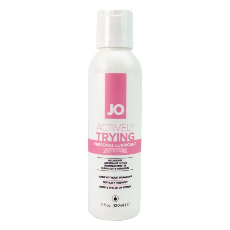 JO Actively Trying helpt koppels om hun gevoel van sensualiteit te behouden tijdens het proberen zwanger te worden. Actively Trying is een gespecialiseerd glijmiddel dat is ontworpen om een omgeving te ondersteunen die gunstig is voor de bevruchting. In tegenstelling tot gewone glijmiddelen is Actively Trying geformuleerd – en getest – om de beweeglijkheid van sperma te optimaliseren. Tegelijkertijd biedt het de zijdezachte textuur en het comfortabele glijgevoel van ons waterbasisglijmiddel, waardoor koppels ook op sensueel vlak makkelijk verbinding maken. Geproduceerd zonder parabenen!