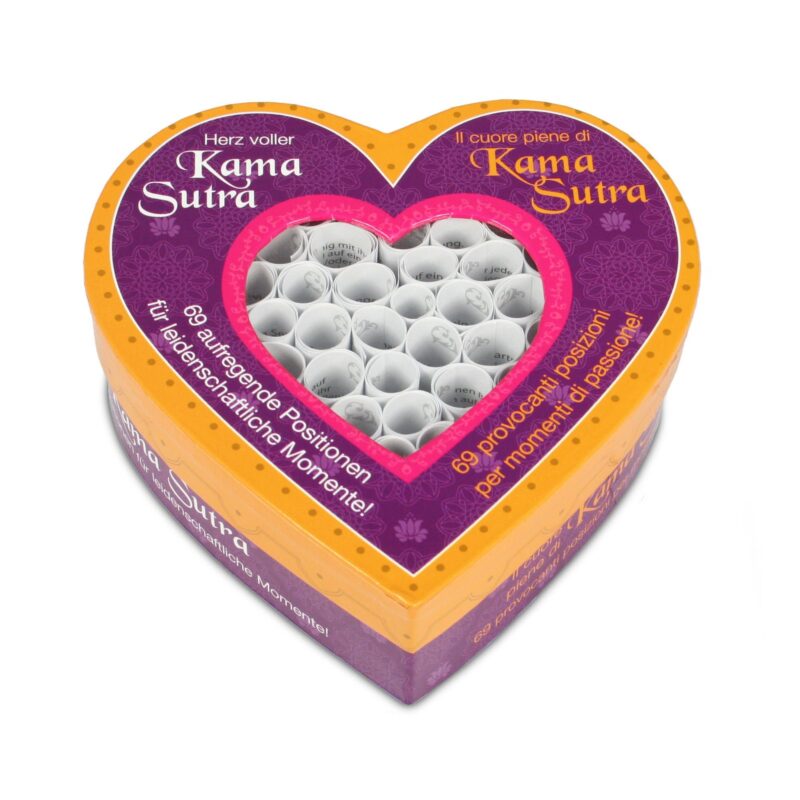 Geef jullie liefdesspel een spannende twist met het Kamasutra Hart van Tease & Please. In deze stijlvolle hartvormige verpakking zitten 69 papieren rolletjes met elk een erotische sekspositie, gebaseerd op de klassieke Indiase Kamasutra. Laat het lot beslissen welke stand jullie ontdekken: van de Goddinnenzit tot het Liefdesschuitje – elke keer wacht er een nieuwe verrassing.