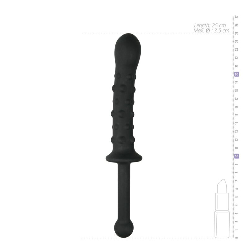 Met de Handler dildo van EasyToys kun je letterlijk alle kanten op. De stoere dildo is namelijk aan beide kanten te gebruiken waardoor hij onmisbaar is in elk nachtkastje. Het smalle en zachte uiteinde is uitermate geschikt voor beginners. Het grote uiteinde met noppen zal alle wensen van de gevorderde gebruiker vervullen. Door de brede, platte voet in het midden van de dildo waardoor elke gebruiker zorgeloos geniet. Breng eenvoudig een fijn anaal glijmiddel op waterbasis aan op het gewenste uiteinde en gebruik het andere uiteinde als handvat. Weet jij al van welke kant jij of je partner gaat genieten?