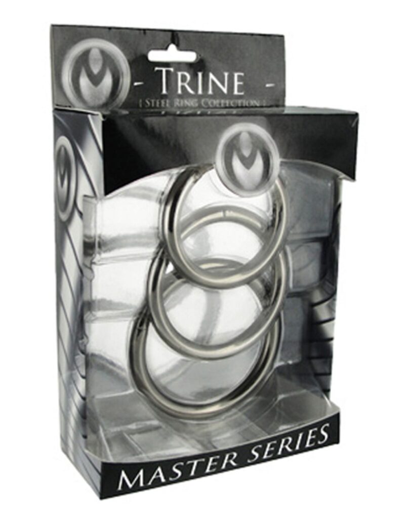 Wil je eens een penisring proberen? Dan ga je voor deze penisringen set van staal van Master Series. Deze stalen cock ringen zijn zowel elegant als stoer. Plaats eenvoudig een Trine Ring over de penis en het scrotum, en geniet van van het aanblik en het gevoel. De Trine stalen ringen kunnen ook worden gebruikt bij de meeste types harnassen.