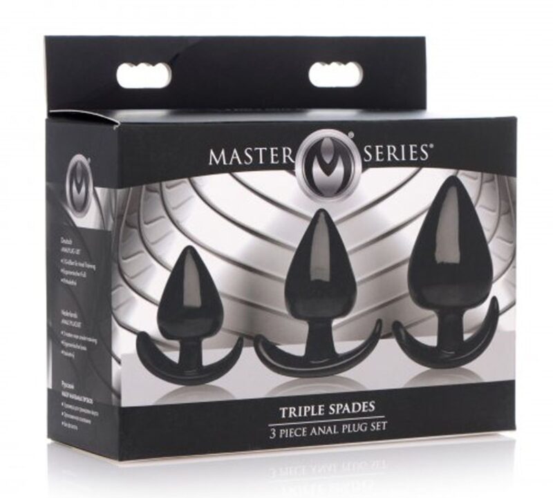 Triple Spades is een driedelige buttplug set met buttplugs in verschillende groottes. Ze hebben allemaal een ergonomische basis die perfect tussen je billen vallen. Door de taps toelopende punt zijn de buttplugs stuk voor stuk gemakkelijk in te brengen. Na gebruik kun je ze reinigen met lauwwarm water en toycleaner.