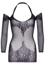 De Twist Halter Jurk is een mini-jurk van kant met lange mouwen, transparante netstof en een kruisende halterhalslijn. De open schouders zorgen ervoor dat je je sexy en gedurfd voelt. Maak je klaar om in dit verleidelijke jurkje in het middelpunt van de belangstelling te staan!