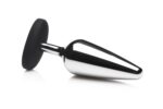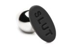 Breng wat extra spanning in de slaapkamer met deze metalen buttplug. Op de siliconen basis prijkt het woord “SLUT”, zodat je partner meteen weet hoe ondeugend je bent. Gemaakt van lichtgewicht aluminium dat je kunt verwarmen of afkoelen voor sensueel temperatuurspel. De taps toelopende vorm zorgt voor een makkelijke manier van inbrengen. De brede, veilige siliconen basis voelt comfortabel en zorgt voor een vol gevoel.
