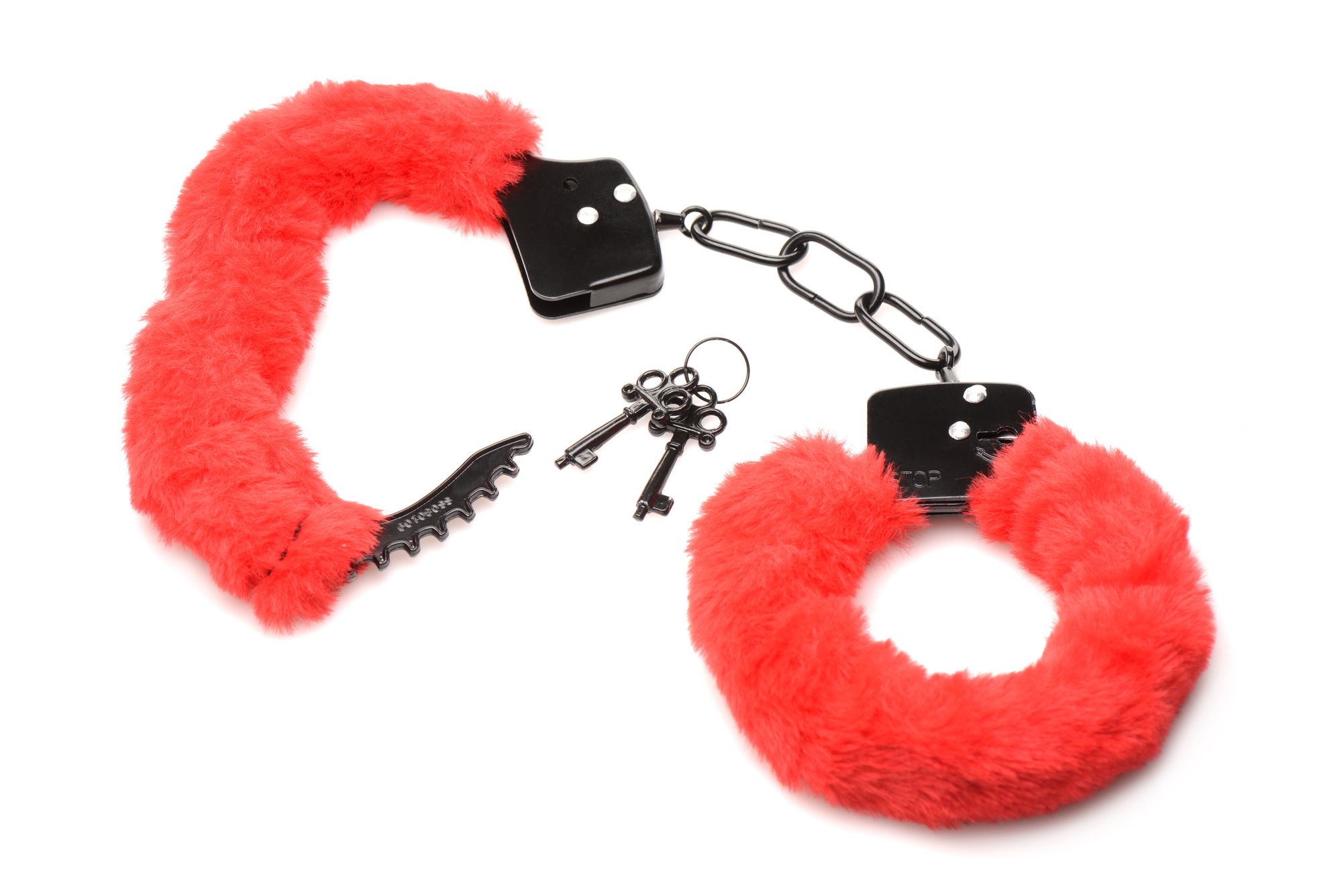Deze pluizige boeien zijn zacht en sensueel rond de polsen van je geliefde. De sterke metalen binnenboeien snijden niet in de tere huid; je hebt immers de beschermende voering van dit kunstbont! De boeien zijn volledig verstelbaar en kunnen zo strak worden gesloten als ca. 11,4 cm in omtrek en kunnen worden geopend tot ca. 17,8 cm omtrek. Bij de boeien worden 2 sleutels geleverd, zodat je altijd een reservesleutel bij de hand hebt. Voor het schoonmaken hoef je alleen het kunstwol plaatselijk te reinigen met warm water en zeep, en daarna laten drogen.