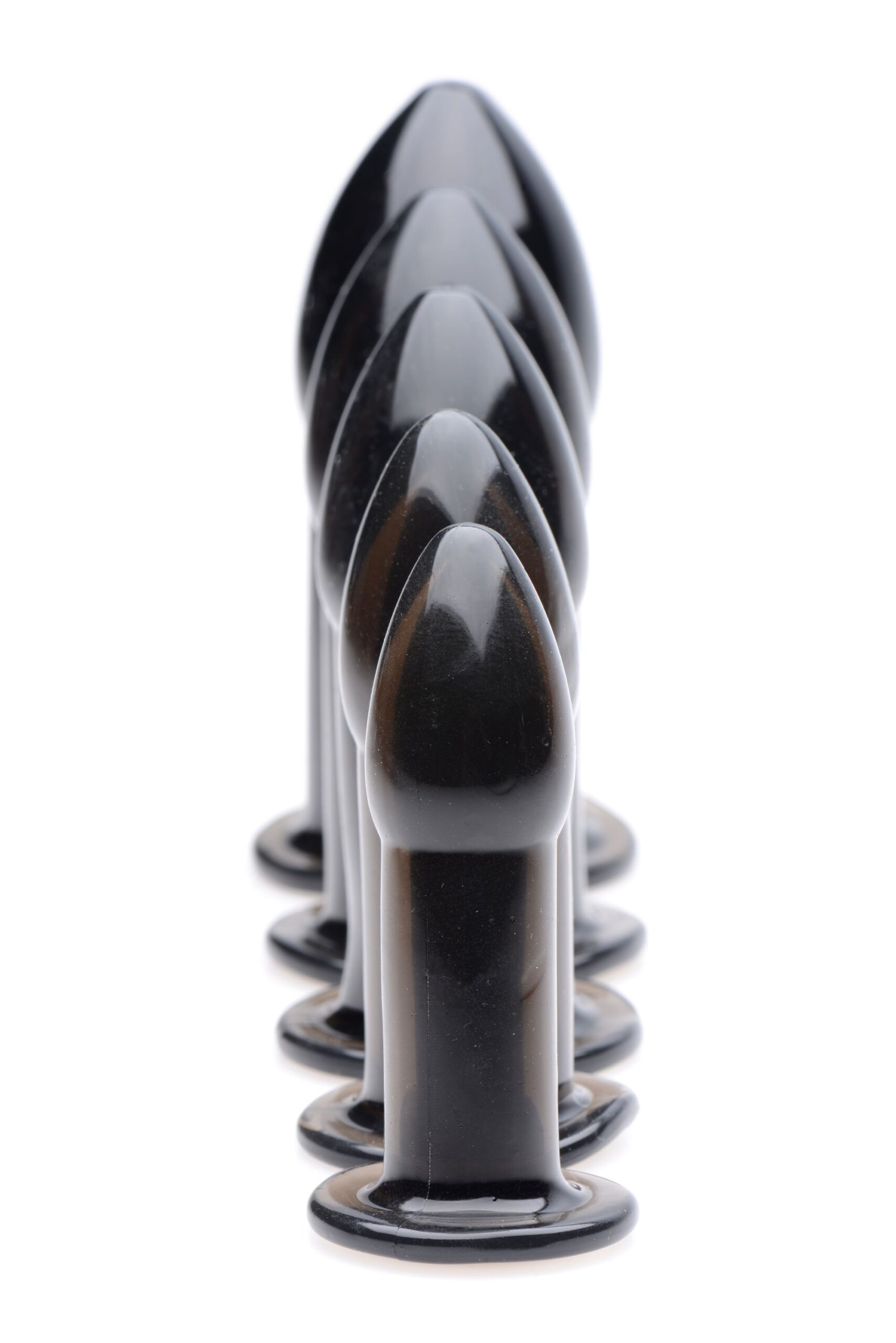 Deze set van 5 rubberen, oplopend in grootte gemaakte anale dilatators bevat alles wat je nodig hebt voor allerlei soorten anaal spel, of je nu nog nieuw bent met ‘backdoor’ toys of al een doorgewinterde liefhebber bent. Elke taps toelopende plug is ontworpen voor comfortabele inbreng, met een puntige top en een uitlopende basis die alles op zijn plek houdt, zelfs bij langer dragen. Het TPE-materiaal biedt voldoende stevigheid voor eenvoudige inbreng, maar is tegelijkertijd flexibel genoeg om comfortabel te blijven.