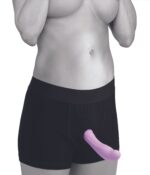 Dit boxer-achtige harnas zit net als ondergoed en heeft een O-ring die uitrekt om de meeste dildoformaten te kunnen accommoderen. Je kunt deze katoenen shorts zelfs onder je gewone kleding dragen of opvullen met je favoriete packer. Dit harnas is uitstekend geschikt voor langdurig gebruik. De ondersteunende, elastische tailleband draagt het gewicht van je dildo en biedt je meer bewegingsvrijheid én variatie in standjes.