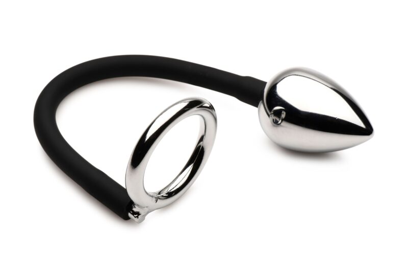 De taps toelopende punt van de plug maakt het inbrengen eenvoudig, terwijl de gladde aluminiumlegering, met behulp van wat glijmiddel, soepel naar binnen glijdt. De plug is verbonden met een siliconenkoord, aan het einde waarvan zich een ijzeren ring bevindt. Deze ring glijdt over je erectie en fungeert als een C-ring, zodat je langer kunt doorgaan, harder blijft en meer geniet, zelfs terwijl je prostaat wordt gestimuleerd door de anaal plug.