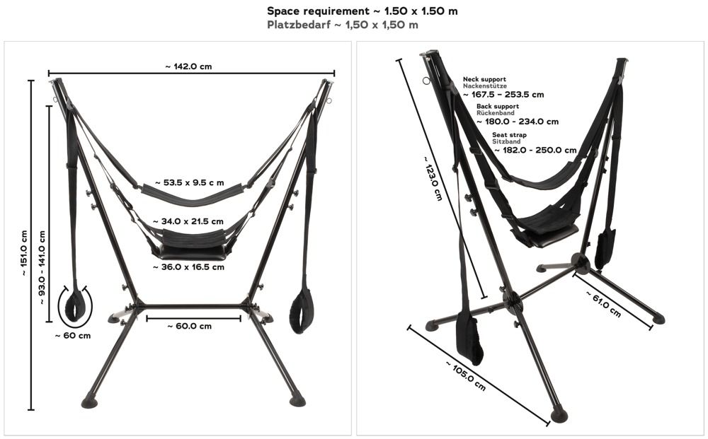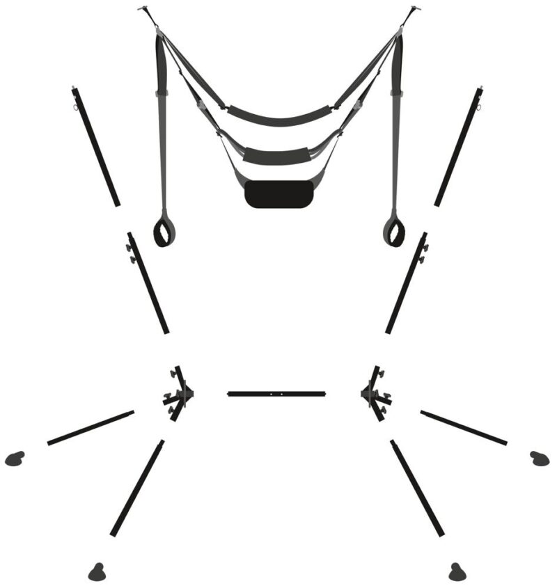 De vrijstaande seks schommel van You2Toys maakt een oneindig aantal seks standjes mogelijk – zonder gedoe en inspanning! De schommel wordt compleet met standaard geleverd en is snel en eenvoudig te monteren zonder gereedschap. De stevige, geassembleerde stalen buisconstructie wordt vastgezet met stabiele schroef- en plugverbindingen. Grote siliconen zuignappen zorgen voor een stevige, stabiele stand op elk glad oppervlak – zelfs bij de wildste bewegingen. De volledig gemonteerde schommel kan een maximale belasting van 125 kg dragen.